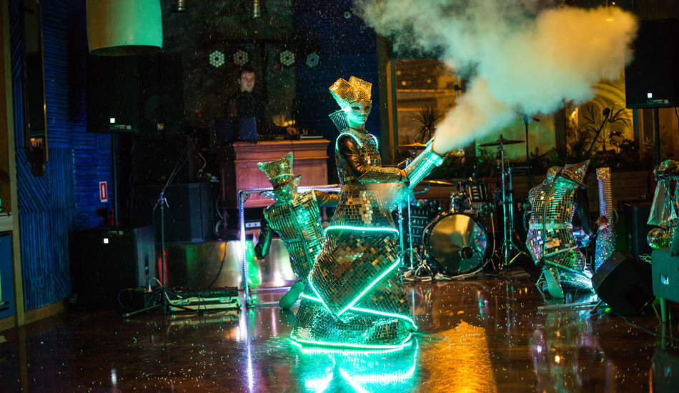 This time there were many surprises in the party program, both for ordinary employees and executives. The evening was opened by the step-singer Vladimir Shpudeiko and a dancing duet. The drive was supported by a bartender show, a magician and a light show. Artists in LED costumes / pixel shows turned ordinary dancing on a dance floor into a pep party. A pleasant surprise for the director of the company was a gift from the team – a portrait of gold sparkles. Literally everything and everyone could have felt like a child again, because the program of the corporate party was a paper show with a pile of rustling tapes. Throughout the event, the atmosphere of comfort and cordiality created a jazz band.